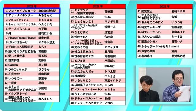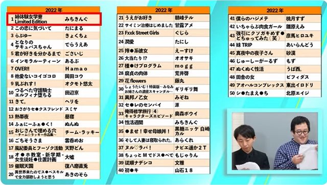 2022年(這一年的閒聊竟然沒提到橫掃各家榜單的令和最強だにまる老師
