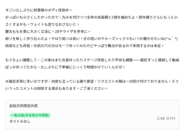 → n555123: 至於這個養(秋葉)身體的部分,他之前在推特好像也一直在 11/12 14:06