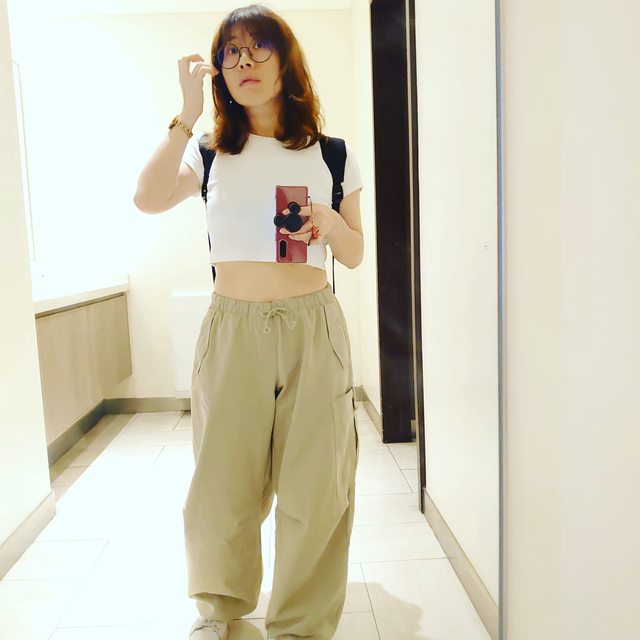 因為竟然能穿得下XS,忍不住得意忘形露出蘿蔔腿