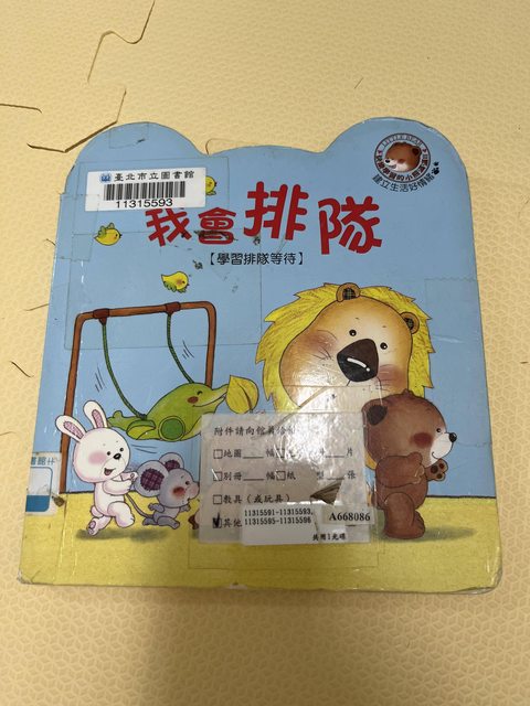 因為小孩在外面公園玩的時候,都不喜歡排隊,因此想找相關繪本來引導要學習排隊這件事。