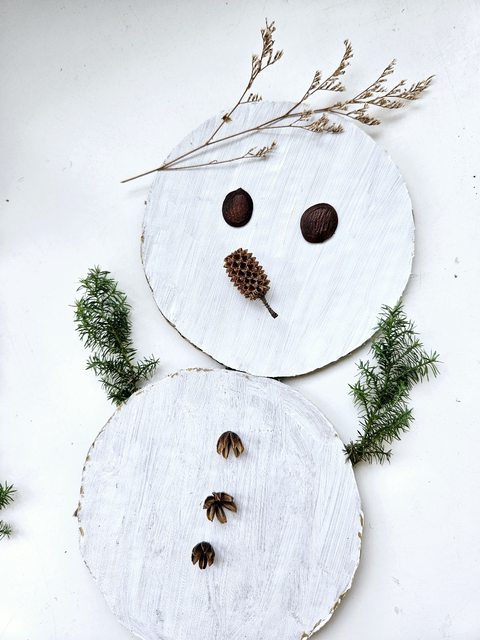 用壓克力彩塗白、中間用樹枝連接