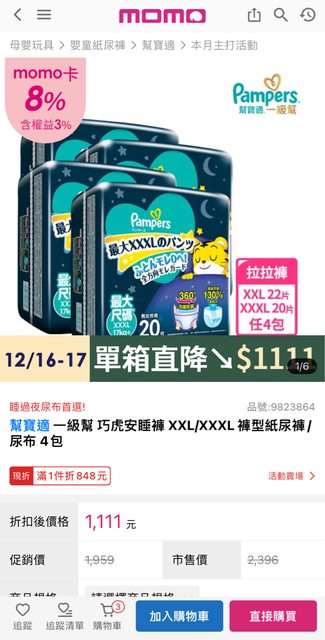 媽媽社團看到的,刷mo 卡還有回饋8% 寶寶沒在用這牌,不確定這價錢是不是真的便宜 有需要的人自己比較看看吧 https://i.imgur.com/VfvfP5Y.jpg