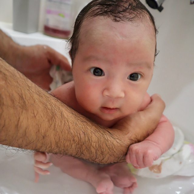 、換衣服、洗屁屁、洗澡,好讓我之後無後援時,老公偶爾也能幫幫忙。