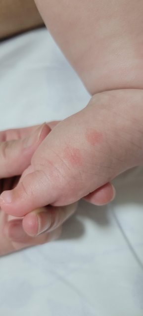 昨天早上發現6個月寶寶臉上有兩個大紅點