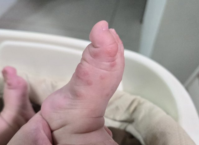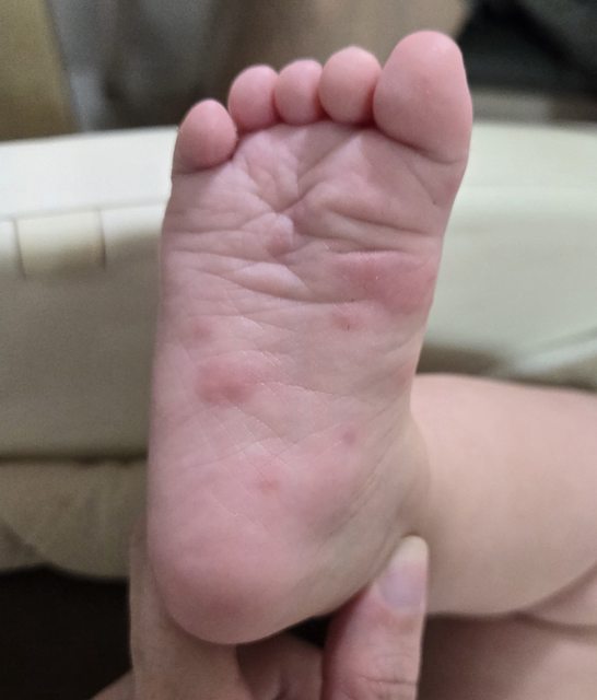 : 4/4晚上睡前寶寶腳上出現幾顆紅疹(跟原po寶寶一模一樣)