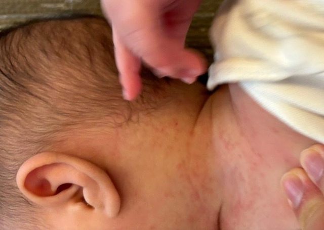 推 coldsan : 看起來是熱疹,我兒子前陣子也有,洗澡水不要太熱用清05/19 14:52