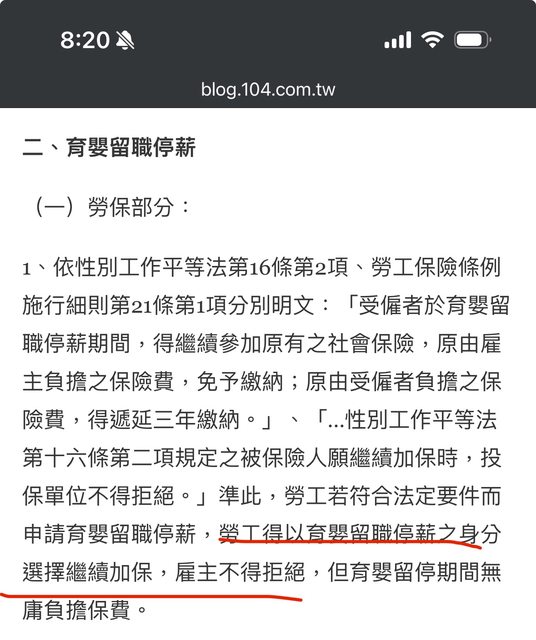 推 yl013 : 1.員工育嬰留停要續保,公司不得拒絕,依據是前面大 06/06 09:37