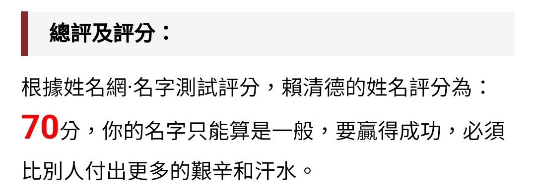 → jaspery : 檢查一下部首, 算命網就會很高分了 06/27 09:05