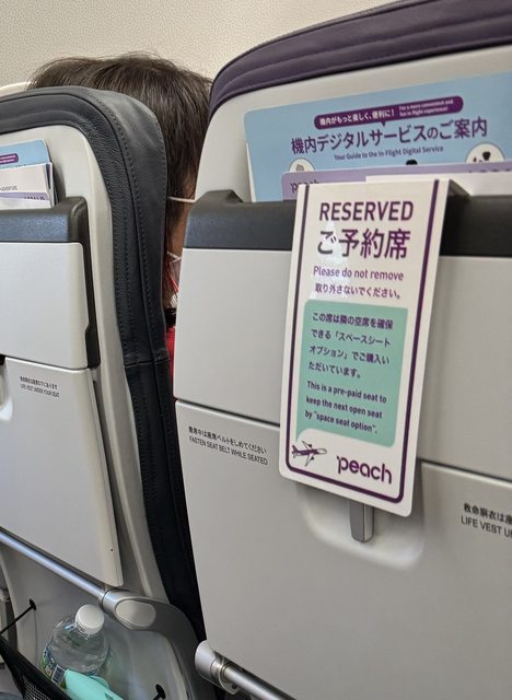 我們的寶寶剛滿一歲非常喜歡活動,除了吃東西以外如果不給他活動他就會開始吵鬧,剛好樂桃有加購機位的服務,我們去回都是劃靠走道的兩個位子,然後+2000加購靠窗的位子,直接把一排佔滿 。