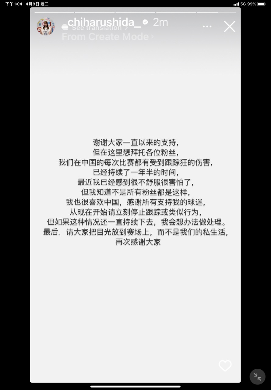 推 nsk : 志田IG用中國簡化字寫被長期跟蹤~ 04/08 13:08