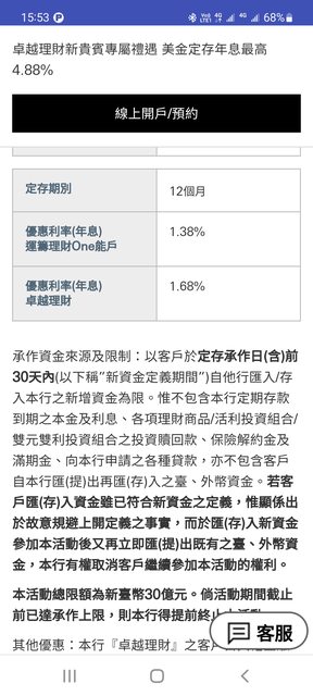 → alex1973: 渣打今天也開始新一波的高利活存啦, 這次 2M+ 就基本 02/21 14:41