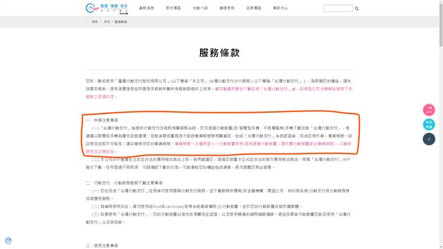 臺灣行動支付的服務條款內也有說明: