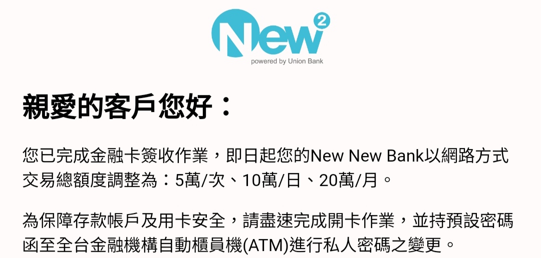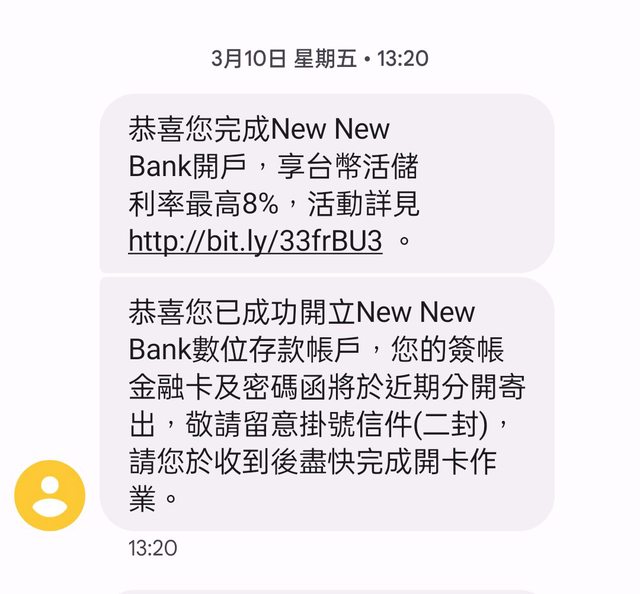 → BobYang1214: Update:3/10收到簡訊 3/23拿到金融卡 3/24拿到密碼 03/24 11:35