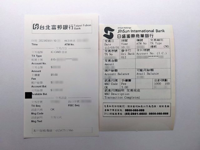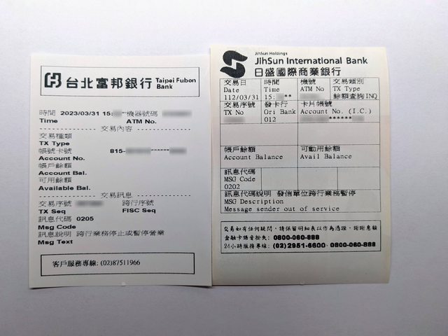 → huangci: ATM明細就真的必須要用實體卡,然後也多了好多痕跡04/01 15:49