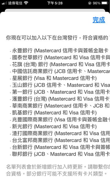支援apple pay 的銀行如下圖