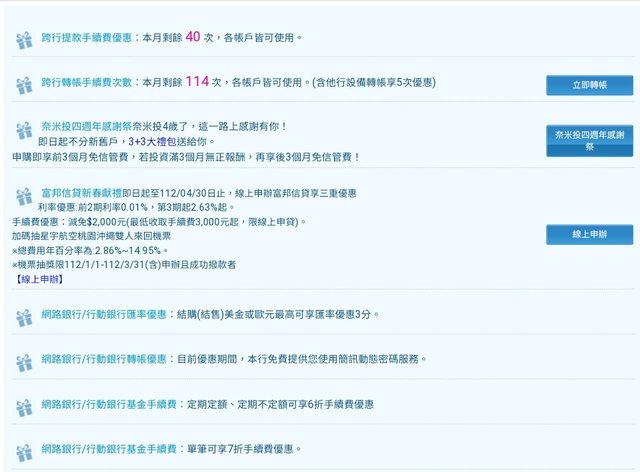 : 有開富邦數位帳,合併為100提13轉(8轉限本行設備)