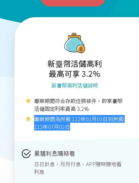 以此圖為例,意思是我必需在7/2之前開戶申辦才有這3.2%?
