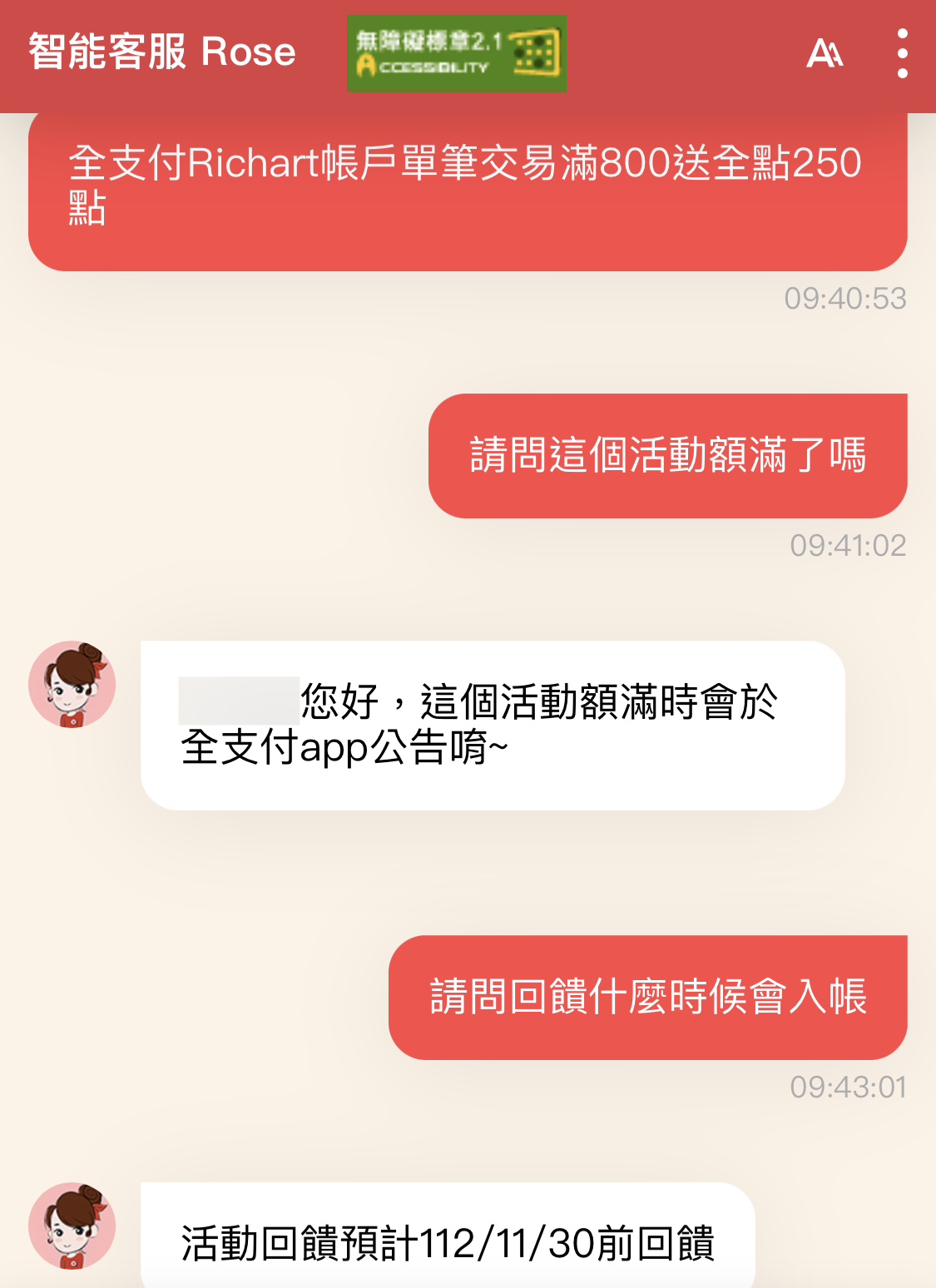 → kkkk1234: 點數非即時入帳 台新客服說額滿會公告在全支付app06/12 10:40