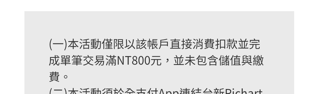 → TZUYIC: 沒寫首次連結,之前已經參加過全支付首次連結台新帳戶拿過06/12 15:32