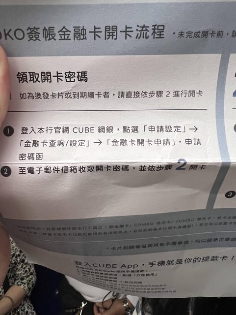 → bemaz: 紙本上面流程包含atm全部做完才算 開卡完成(有些做完網銀06/15 23:11