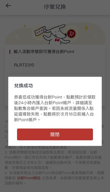 推 ysy2003: 感謝分享 有跳兌換成功 等明日入帳 好奇這個活動序號來 06/17 20:15