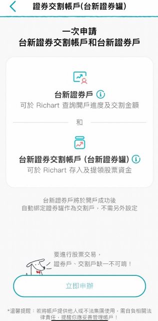 → TZUYIC: 已有Richart帳戶且首次開立證券戶,如果有成功扣除交割款 06/20 12:29