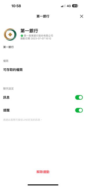 → LazyICE: line通知 要看一銀line官方帳號有沒有綁定個人化服務 不 07/07 22:22