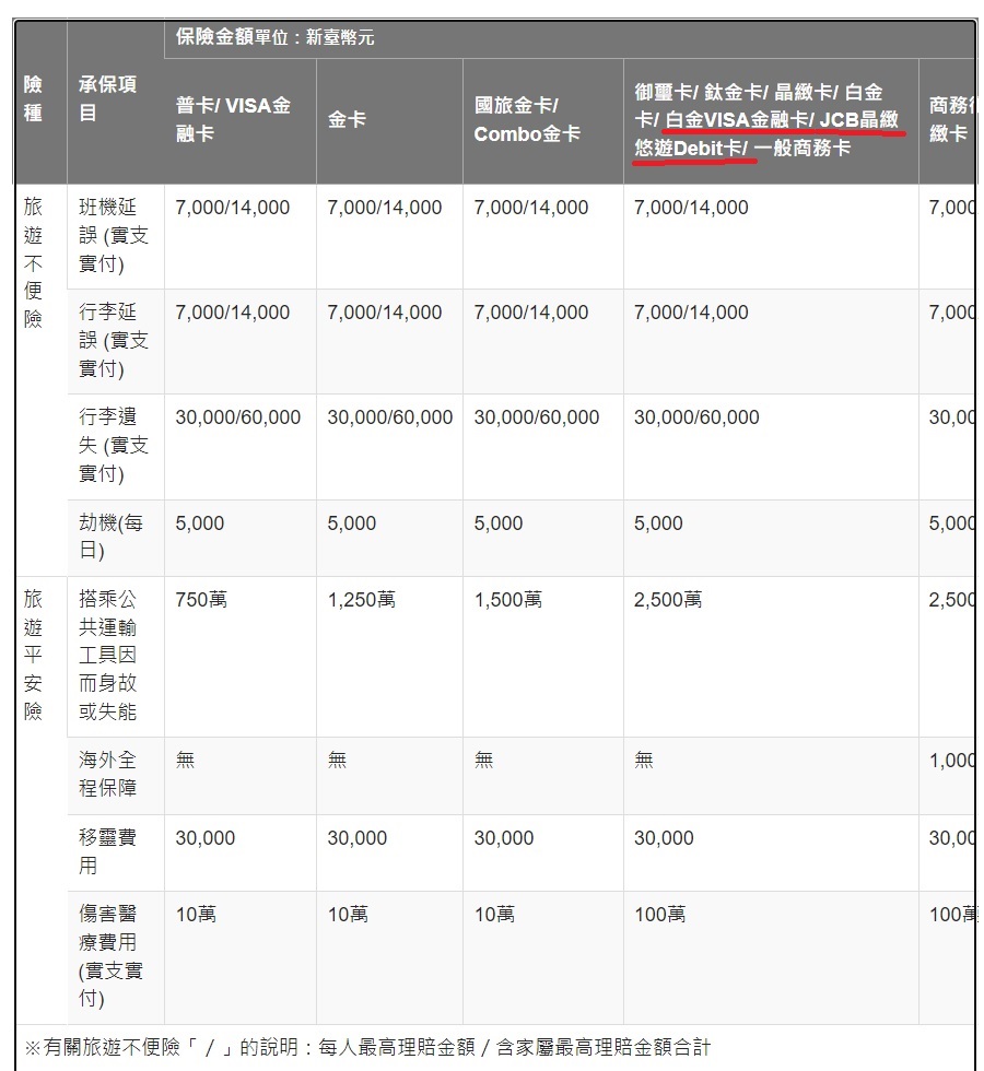 → tpcjotp: 自己查華南旅平險,visa金融卡的保障跟信用卡普卡一樣 08/01 19:21