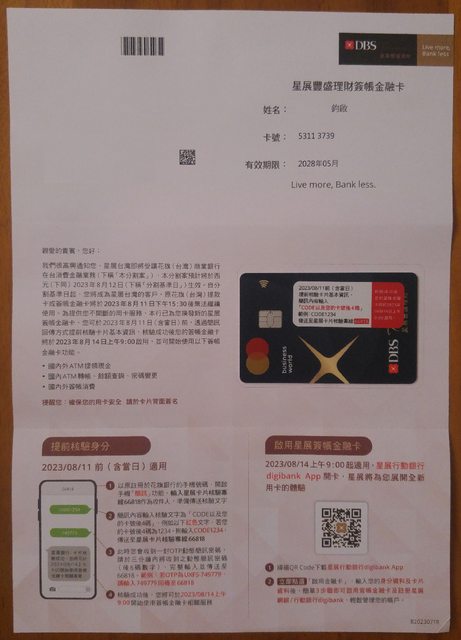 → TZUYIC: 星展行動銀行digibank APP上開卡。 08/11 14:41