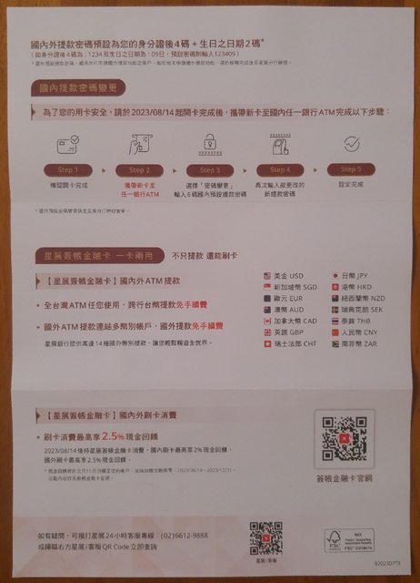 推 m58096: 回應一下樓上的疑問,今天剛好拿到最新版的星展開戶總約定 08/08 23:56