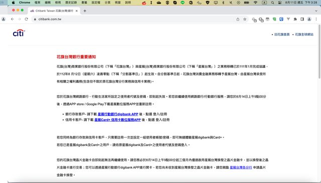→ zjk4451: 連信用卡明細都沒 花旗至少功能還有做 08/11 16:06