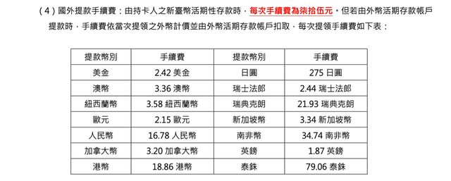 一般帳戶+台幣帳戶扣款:75元+提領金額1%