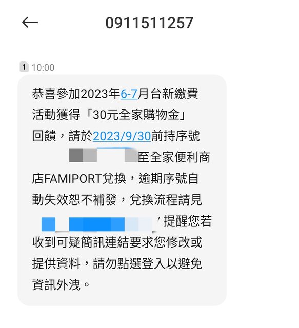 剛收到簡訊通知了!