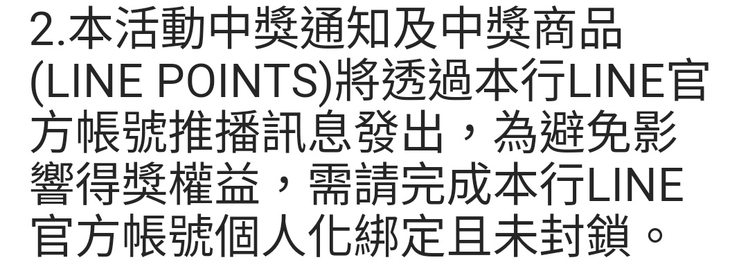 2.首次開通並登入華南銀行+APP,送LINE POINTS 5點,限量前15,000名。