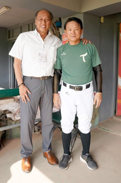 日在台南棒球場出賽,渡邊久信總經理也到場,趁著賽前練球時間特地前往與洪一中總教