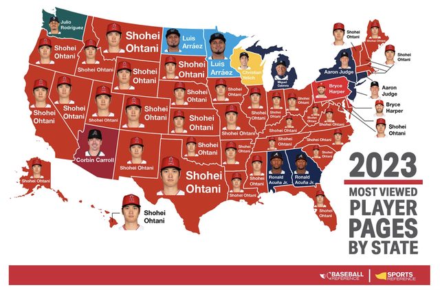 於是Baseball Reference統計全美今年被查詢最多的球員