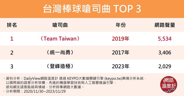 輿情分析系統,調查出近三年網路聲量最高的台灣棒球嗆司曲Top 3,一起來看看這些點