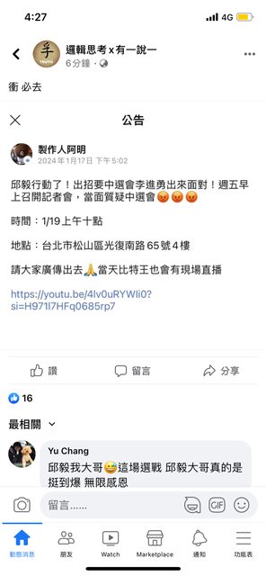 推 swps40309: 期待邱毅跟黃國昌同台痛斥民進黨政府 01/18 16:35