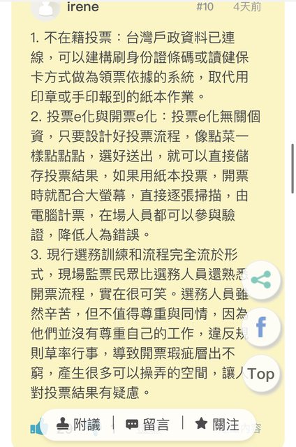 indium111: 選票上有流水編號就違反不記名原則了,還有電子投票更 01/22 12:35