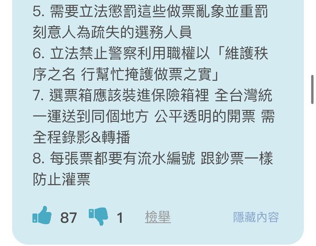 indium111: 當場開票都會吵做票的人,居然要求選票不當場開票,先 01/22 12:37