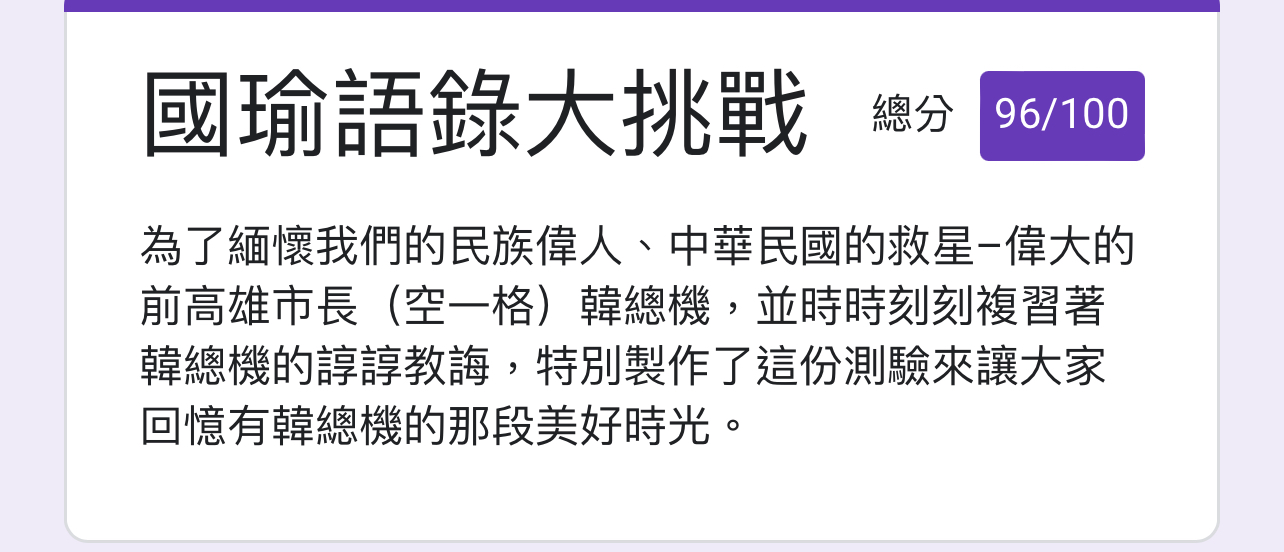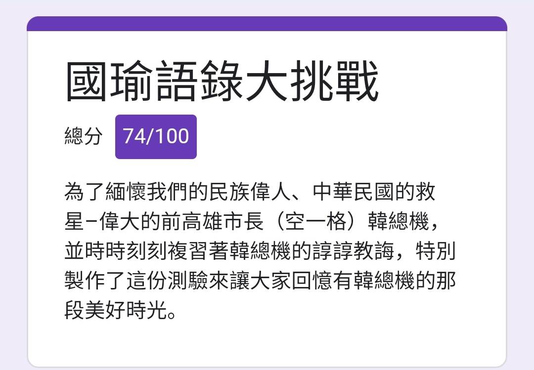 xerxes79: 80分 我最後一題竟然選成高雄發大財02/04 13:28