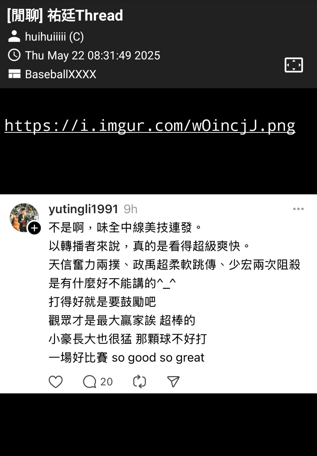 推 justyesung: 上次連自家球迷祐廷都能被嫌了XD 06/28 11:40