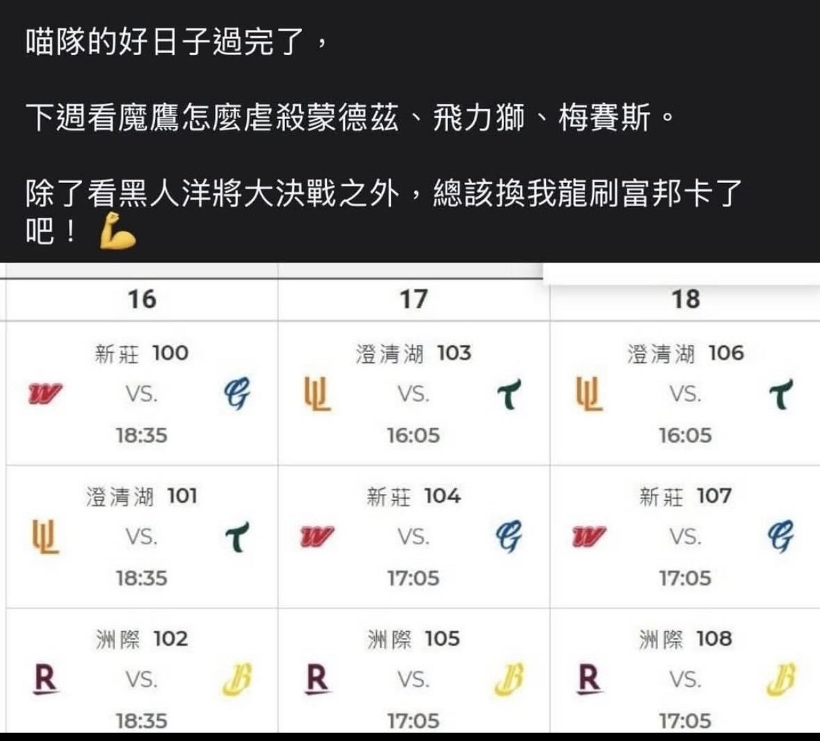 推 hses5307: 喵隊的好日子過完了,下週看魔鷹怎麼虐殺 06/29 20:22