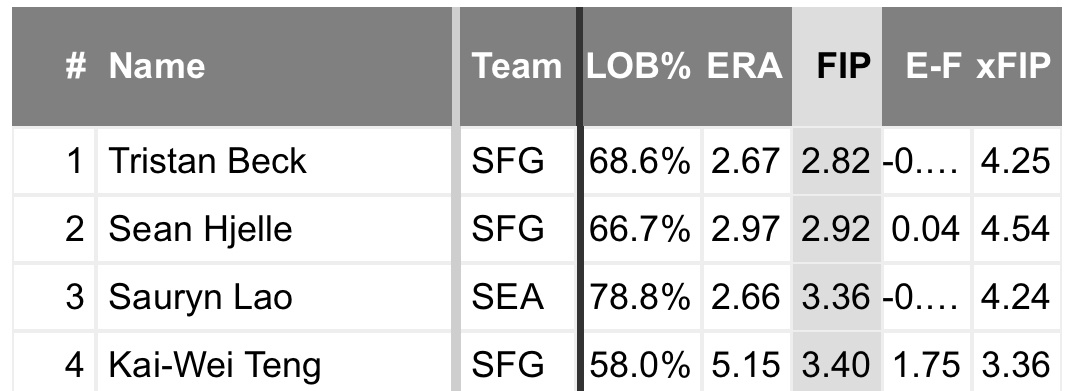 → laangels27: 至少投30局的投手裡面他FIP是PCL第四 殘壘率太低 07/02 11:36