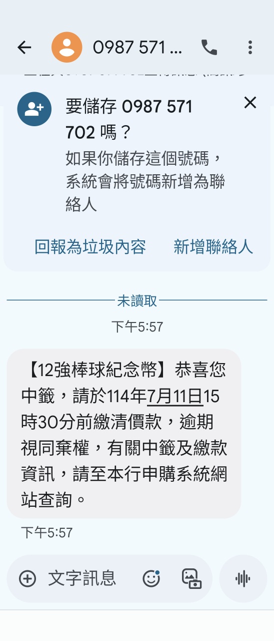 → Saboten11056: 【12強棒球紀念幣】很抱歉!您申購該紀念幣未中籤, 07/03 17:37