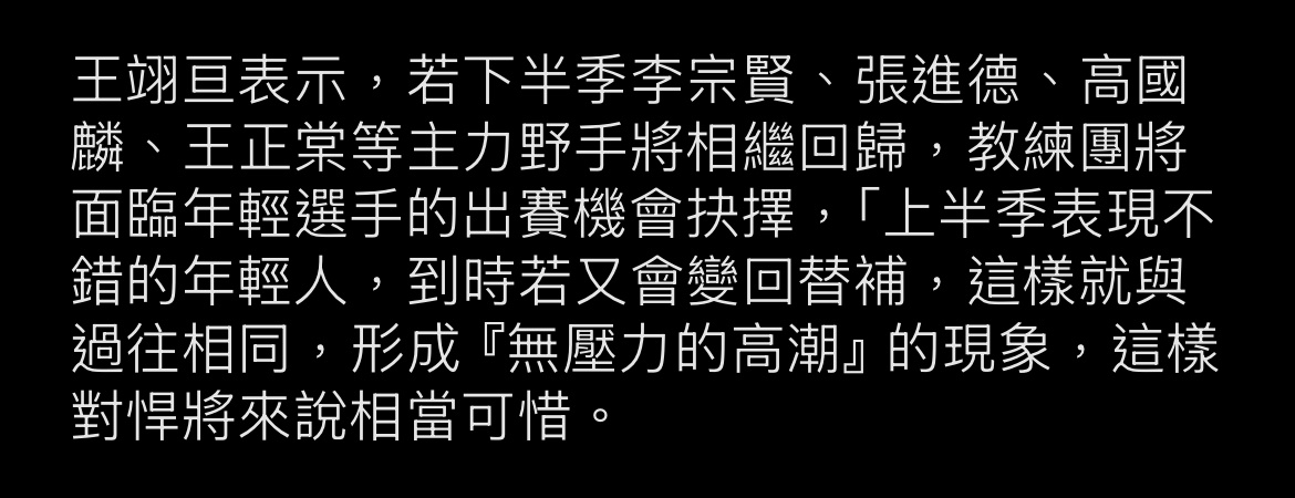 → lightjayjw: 的出賽頻率,29歲以上中生代得到陳52認可就打好打滿 07/04 14:43