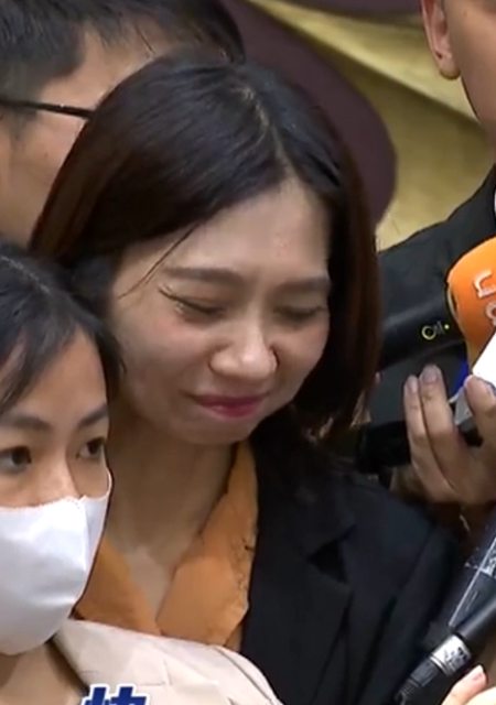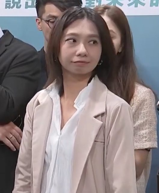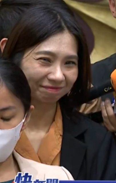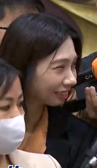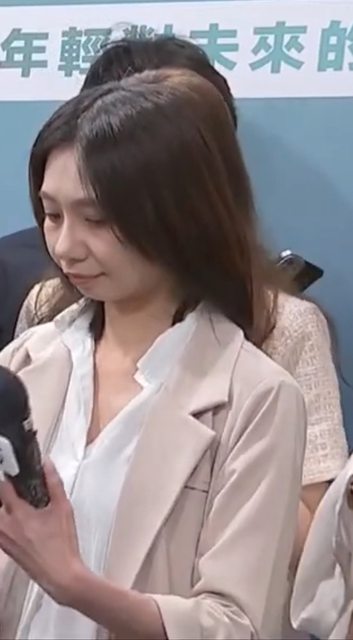 似乎是T台 女記者~~ 好像很容易憋笑 超可愛~~ 雖然感覺年紀不年輕了~~ 但感覺敬業也辛苦 常常一手拿很多mic 提一堆問題~~熟熟的很可愛 https://i.imgur.com/jRqj8p4.jpg