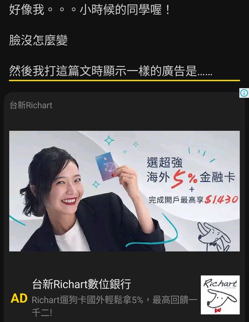 然後我打這篇文時顯示一樣的廣告是……