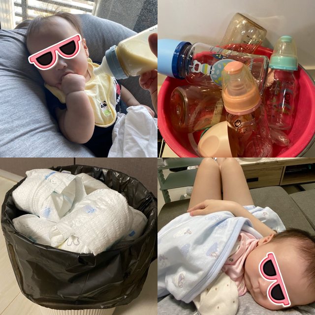 白天瘋狂洗東西、餵奶、陪玩、做自己的飯菜、再次洗碗