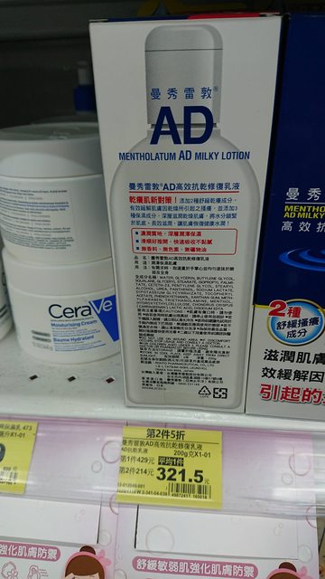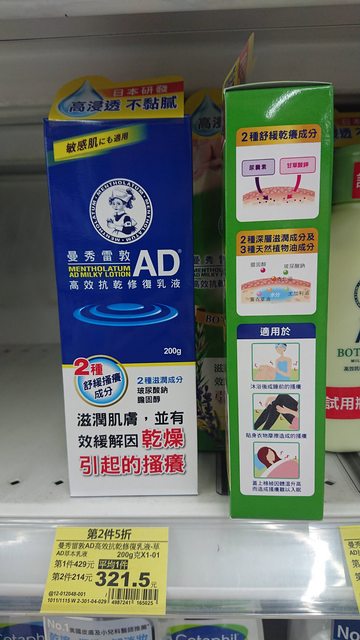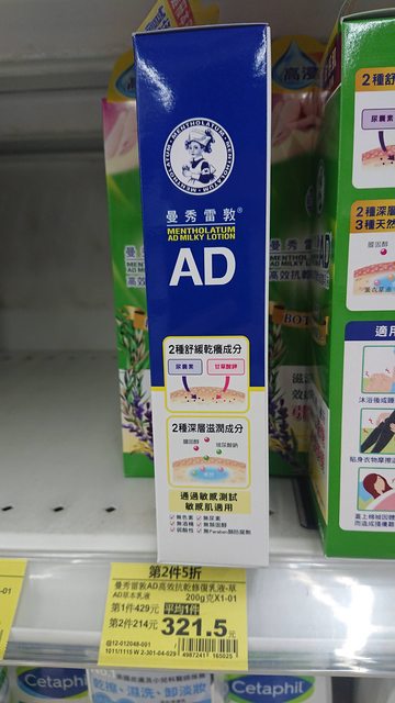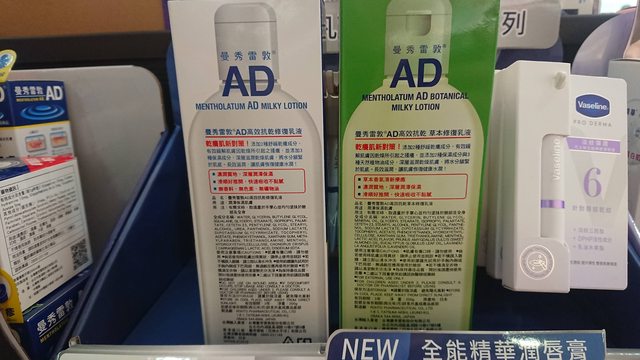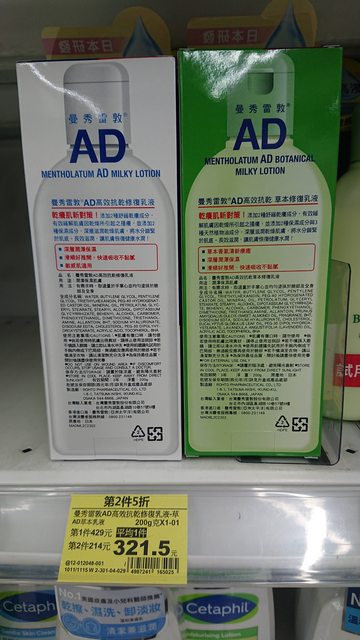 今日下午來到臺中西屯家樂福店逛逛,看到曼秀雷敦AD高效抗乾修復乳液(原味、草本)換